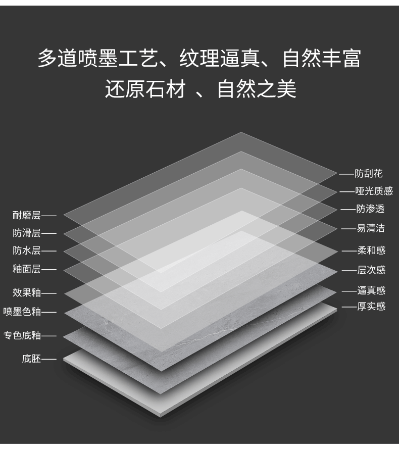 金曼古仿古地磚,采用國際先進的超大型壓機自動成型,經世界一流的滾筒印花和高溫煅燒而成,通過仿石、仿巖、仿木、仿布、仿金屬等多種表現方式,產品花色圖案新穎時尚,領先國際潮流,具有超耐磨、防滑、防污等高性能指標。