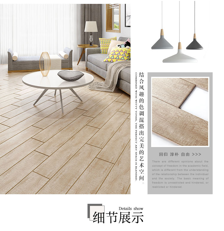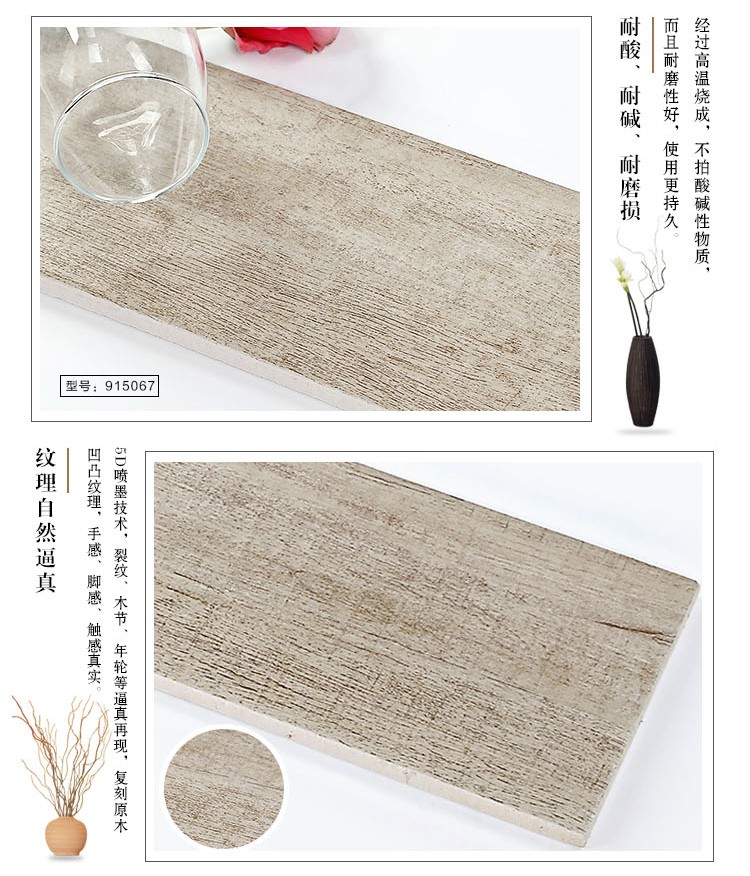 金曼古木紋磚,是一種表面呈現木紋裝飾圖案的環保建材.紋路逼真、自然樸實、沒有木地板褪色、不耐磨等缺點;曼古陶瓷木紋磚系列線條明快,圖案清晰為特色。本身具有阻燃,不腐蝕的特點,綠色、環保型建材;產品使用壽命長,耐磨,無需像木制產品那樣周期性地打蠟保養等.