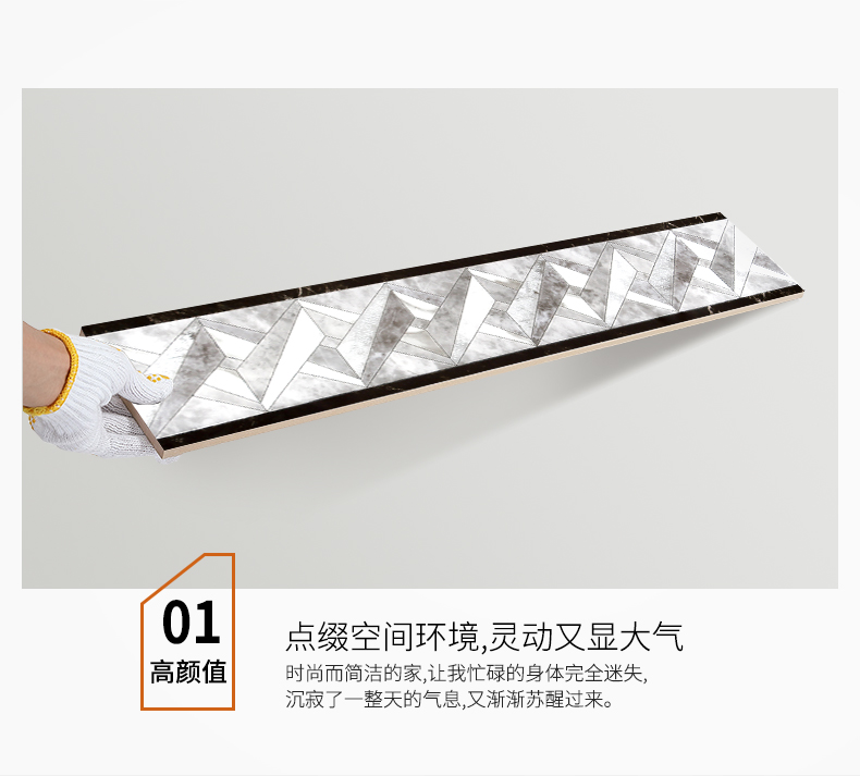 金曼古波導線20年造磚工藝,工藝不斷升級,打磨技術干凈利落,易鋪貼,效果統一平整。