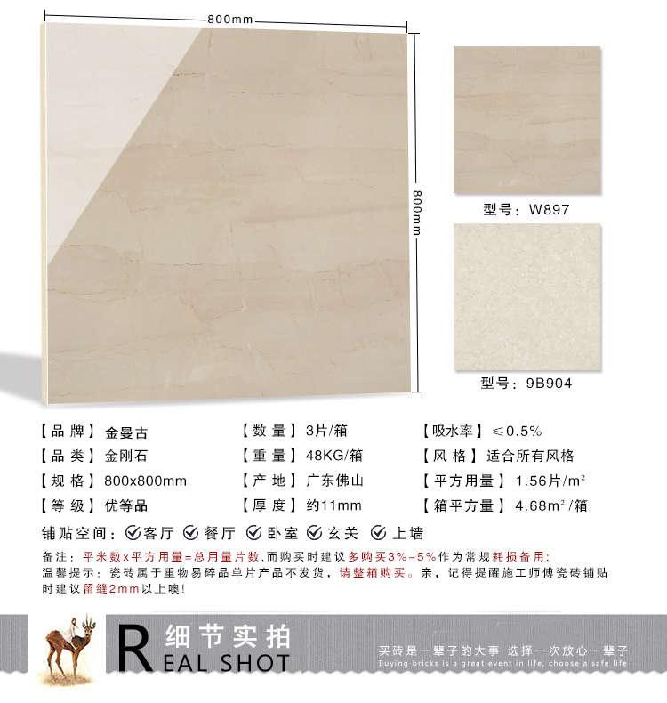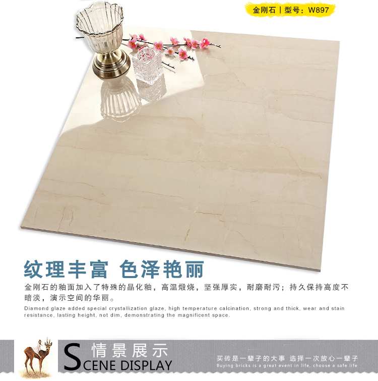 金曼古瓷磚廠家特價金剛石因高品質而得名,是一款極具天然石材效果和微晶石質感的仿石材瓷磚,它不但在價格、環保、耐用和清潔上極具優勢,在質感、規格、花色、重量等指標上,金剛石都遠遠勝于石材、拋光磚。相比其他種類的產品,它最大的特點可以用“高亮度、高耐磨、高平整、高逼真、高清晰、高環保”。