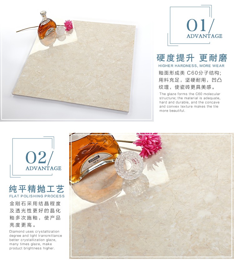 金曼古瓷磚廠家特價金剛石因高品質而得名,是一款極具天然石材效果和微晶石質感的仿石材瓷磚,它不但在價格、環保、耐用和清潔上極具優勢,在質感、規格、花色、重量等指標上,金剛石都遠遠勝于石材、拋光磚。相比其他種類的產品,它最大的特點可以用“高亮度、高耐磨、高平整、高逼真、高清晰、高環保”。