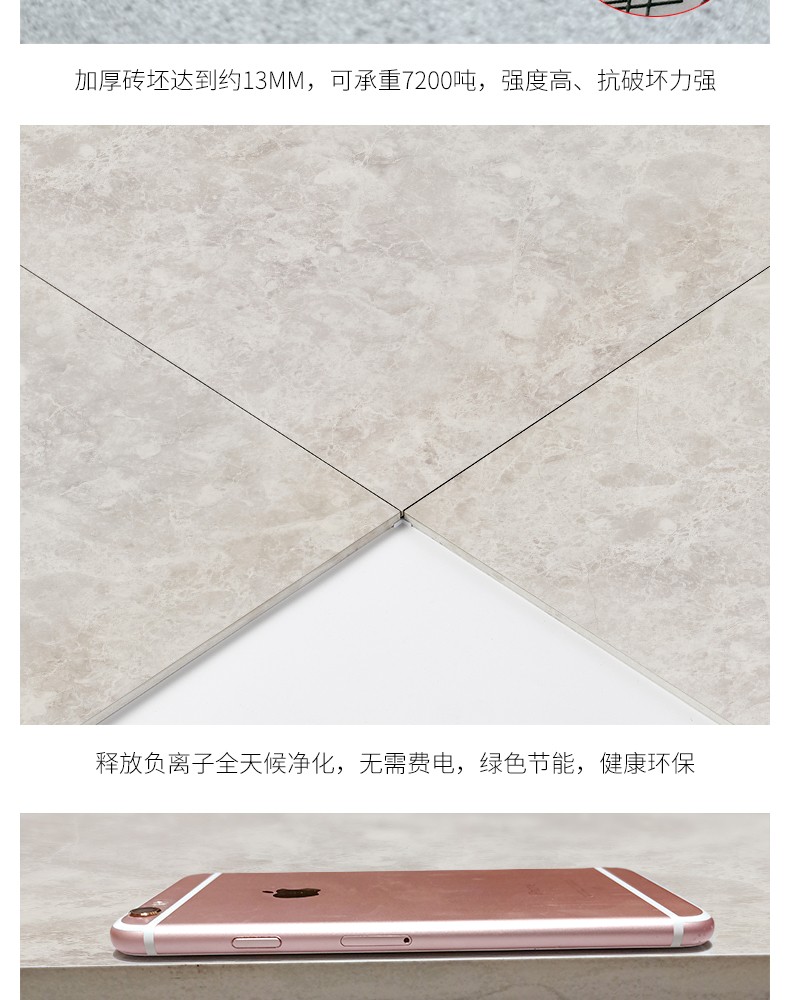 金曼古負離子瓷磚,能持續產生負離子,提高居室內空氣負離子濃度,改善室內空氣質量,提升人體健康水平。負離子被稱為空氣維生素,負離子瓷磚創造安全健康的空間環境。工程用磚全拋釉地磚、通體大理石瓷磚、金剛石地磚等支持加工定做家裝瓷磚批發。