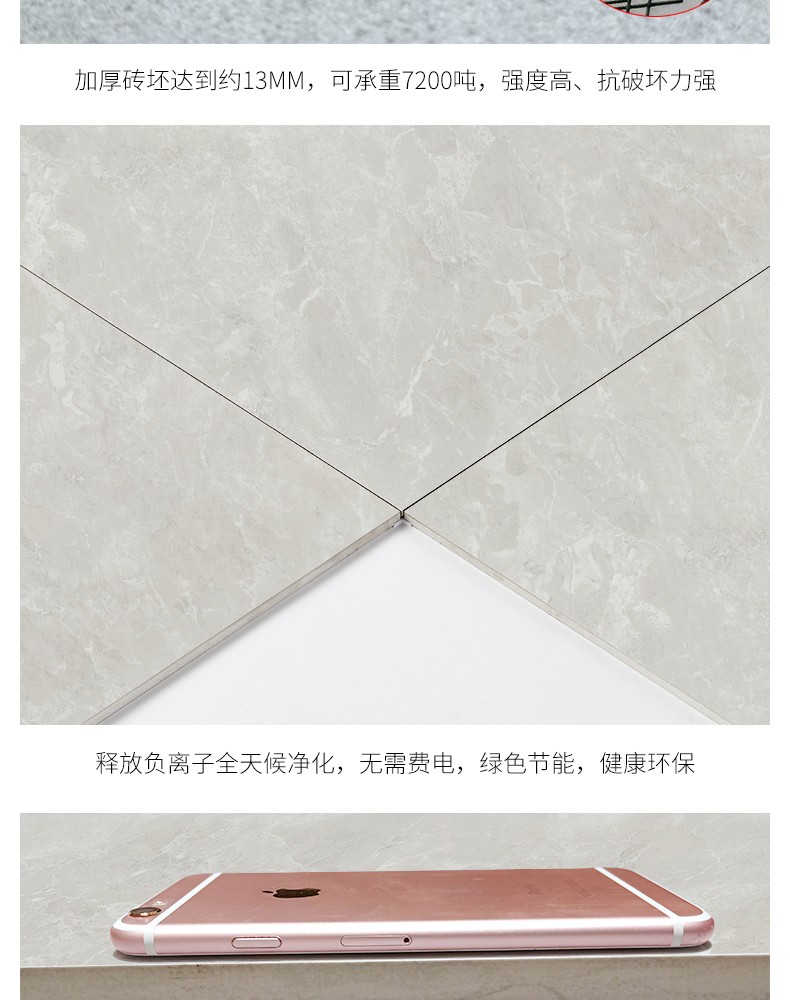 金曼古負離子瓷磚,能持續產生負離子,提高居室內空氣負離子濃度,改善室內空氣質量,提升人體健康水平。負離子被稱為空氣維生素,負離子瓷磚創造安全健康的空間環境。工程用磚全拋釉地磚、通體大理石瓷磚、金剛石地磚等支持加工定做家裝瓷磚批發。