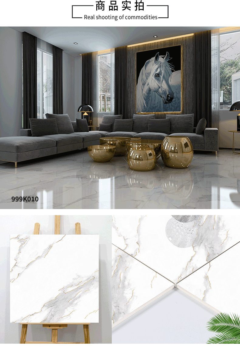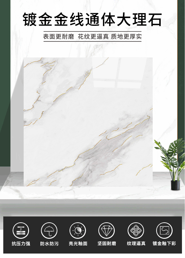 金線金粉 【產品介紹】航天級激光鍍金工藝,鉆石雕刻技術,高溫慢燒,釉層不吸污吸水率低,真空鍍金燒成后再進行真空電鍍工藝,平整如鏡面,精拋細磨,磚面平整光滑細膩光澤度、亮度、硬度較高。立體紋理,釉下彩工藝,三次淋釉增加磚面的立體感。